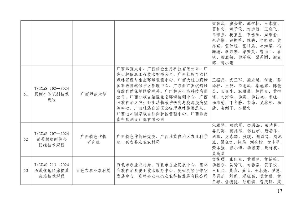 1月15日,广西标准化协会公布第一批100 项标准实施应用典型案例名单,我校作为牵头起草单位编制的《白头叶猴野生种群调查规范》、《鳄蜥个体识别技术规程》两项团体标准,成功入选原创性高质量团体标准实施应用典型案例。