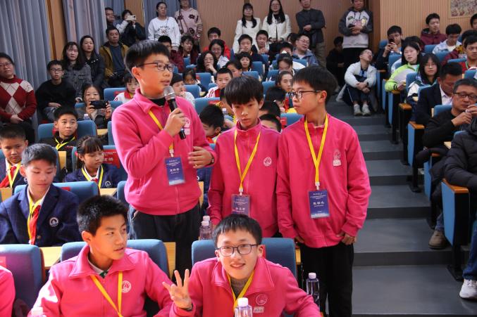 接着由席南华院士讲话并与在场师生展开了亲切而深入的对话。同学们踊跃提问,围绕数学实验的学习与实践提出了许多具体问题,席院士结合自身研究与教学经验,一一予以细致解答。他指出,数学实验的生命力正来源于真实世界,鼓励同学们留心观察日常生活,从自然现象、社会活动乃至个人兴趣中捕捉问题,将数学知识与现实情境有机融合。关于模型验证,他强调实证与推理并重,既要借助工具进行测算与模拟,也要回归数学逻辑进行严谨分析。对于“无穷”这类抽象概念,席院士建议通过具体实验与可视化手段逐步建立直观感受,再走向形式化理解。席院士特别勉励师生,在探索过程中遇到困难是常态,关键在于保持好奇与耐心,学会将大问题分解、借助团队协作、主动寻求跨学科视角,并享受从试错到突破的过程。他充分肯定广西在数学实验教学方面的积极探索,认为这类实践不仅有助于激发学生兴趣、培养创新思维与动手能力,更是连接抽象理论与直观认知的重要桥梁,对数学教育的可持续发展意义深远。此次也是席院士半年内第二次指导广西数学教育工作,充分体现了他对中国数学基础教育,尤其是对广西地区数学教育发展的重视与支持。他的讲话和现场交流为在场师生带来了深刻的启迪和满满的收获。