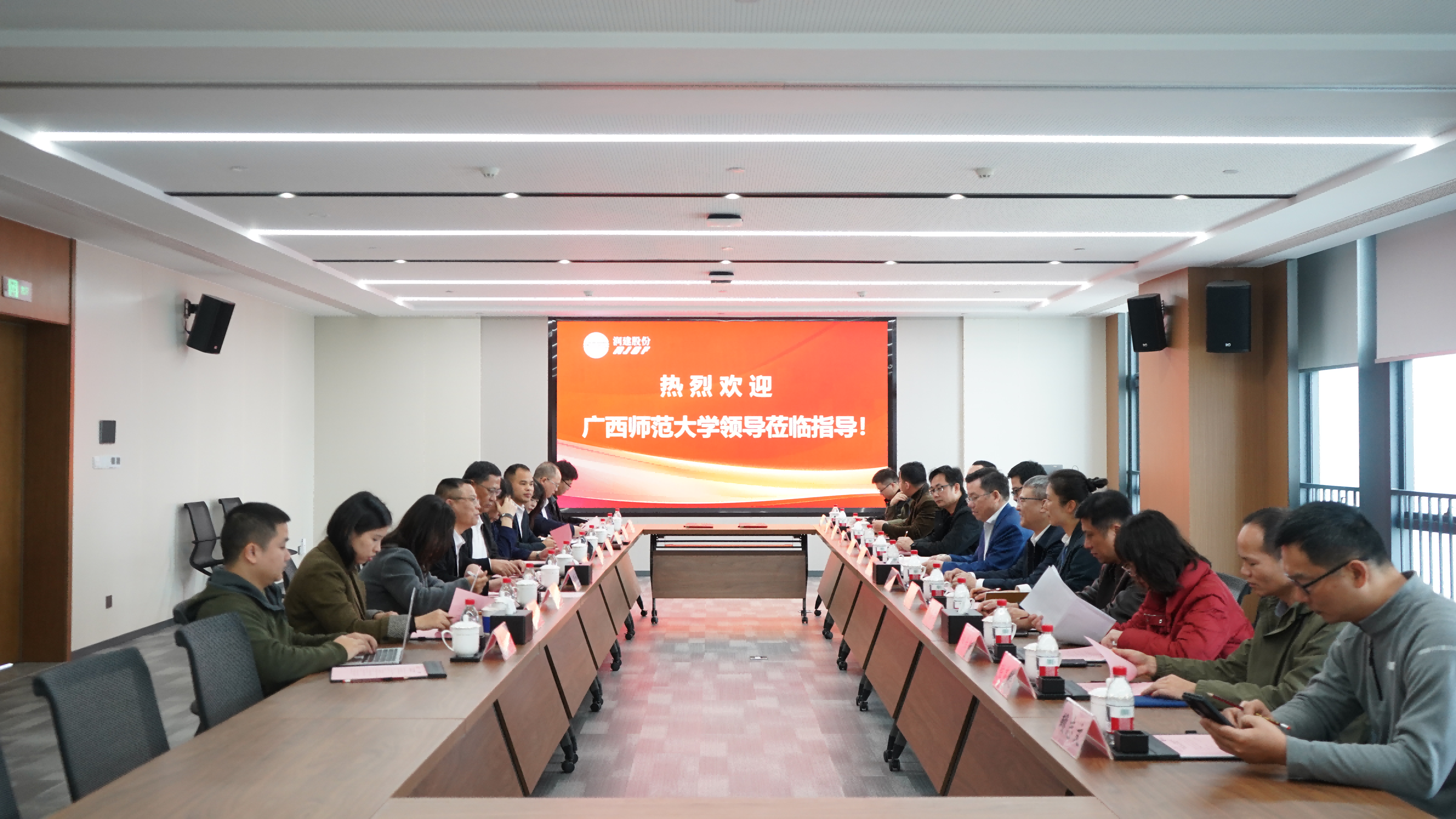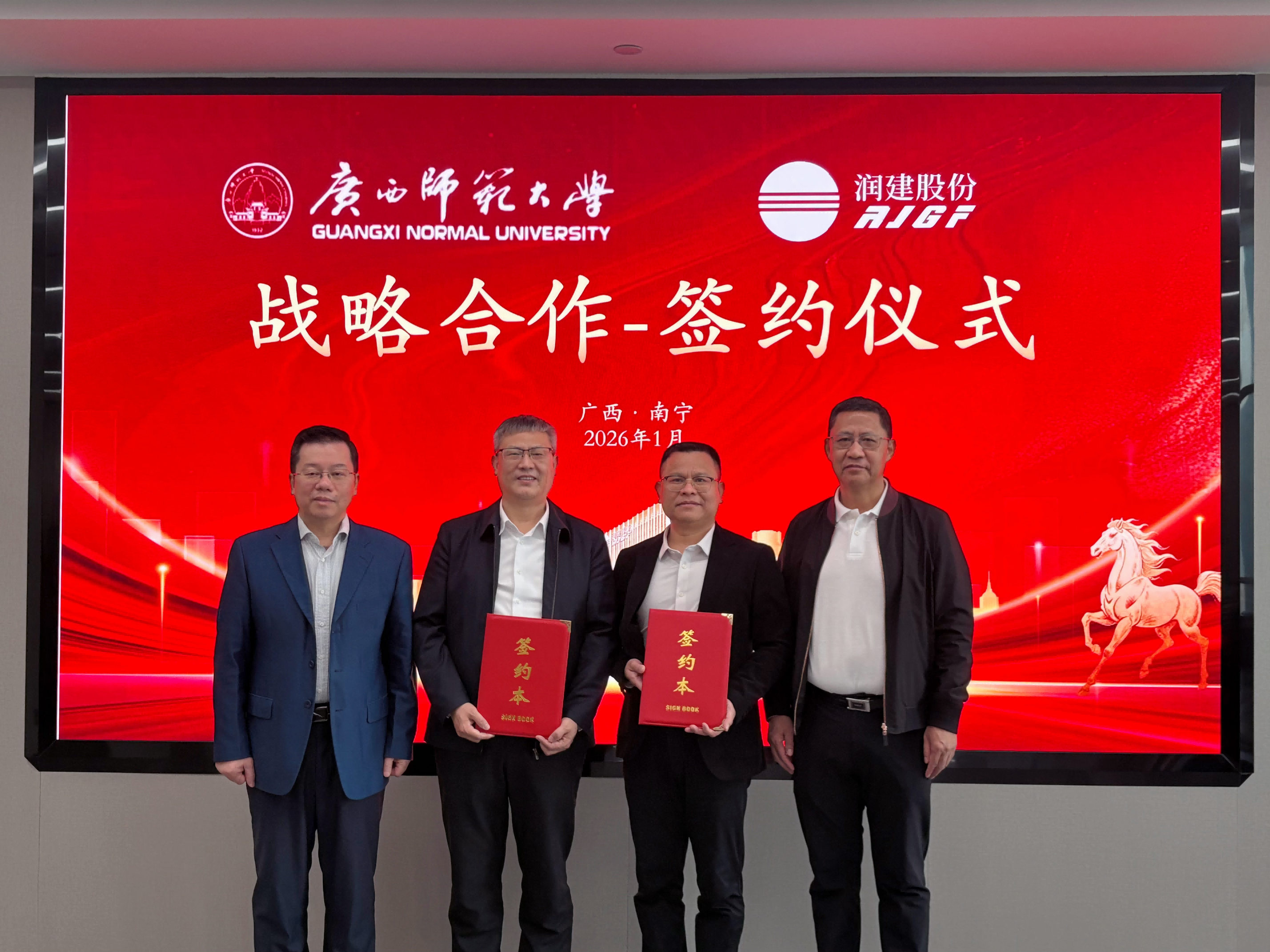 1月30日,广西师范大学与润建股份有限公司战略合作签约仪式在该公司五象总部举行,标志着校企合作迈入实质推进、深度融合的新阶段。校党委书记贺祖斌、润建股份有限公司董事长李建国出席仪式并分别致辞,校党委常委、副校长宋树祥,润建股份有限公司党总支书记、执行总裁李群伟参加仪式。