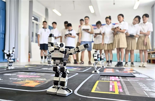 柳州市鱼峰区一所中学引入人工智能人形机器人,常态化开展人工智能、机器人知识教学。黎寒池/摄
