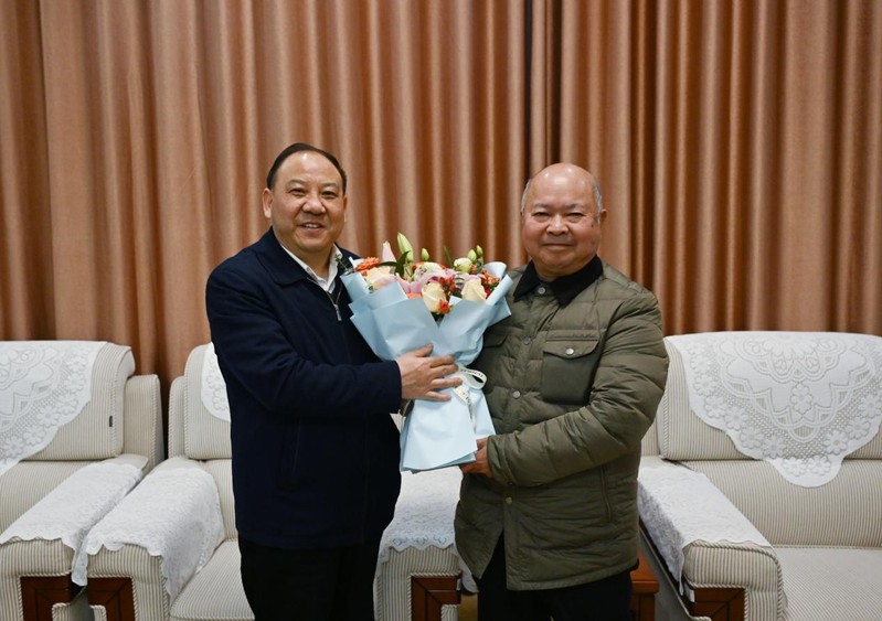 慰问活动中,刘家凯代表自治区科协向两位科技工作者送上新春祝福。他高度赞扬孙杰远校长和邓荫伟教授长期以来在科研创新发展、技术推广传播等领域作出的杰出贡献。刘家凯表示,广西师范大学近年来在各方面取得的显著成绩有目共睹,希望学校广大科技工作者继续深耕专业领域,为广西高质量发展注入更多创新动能。
