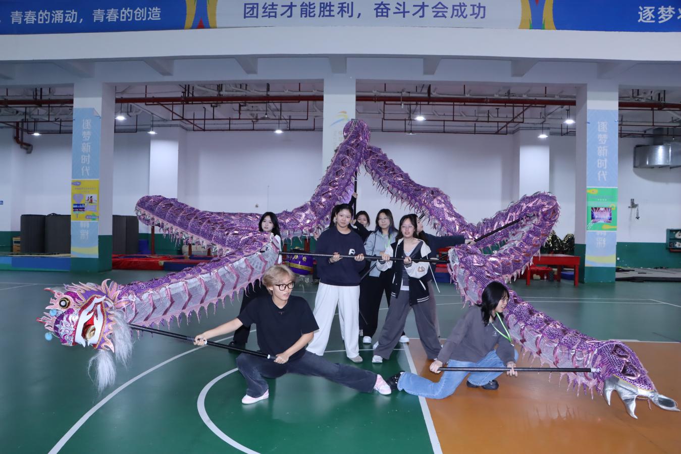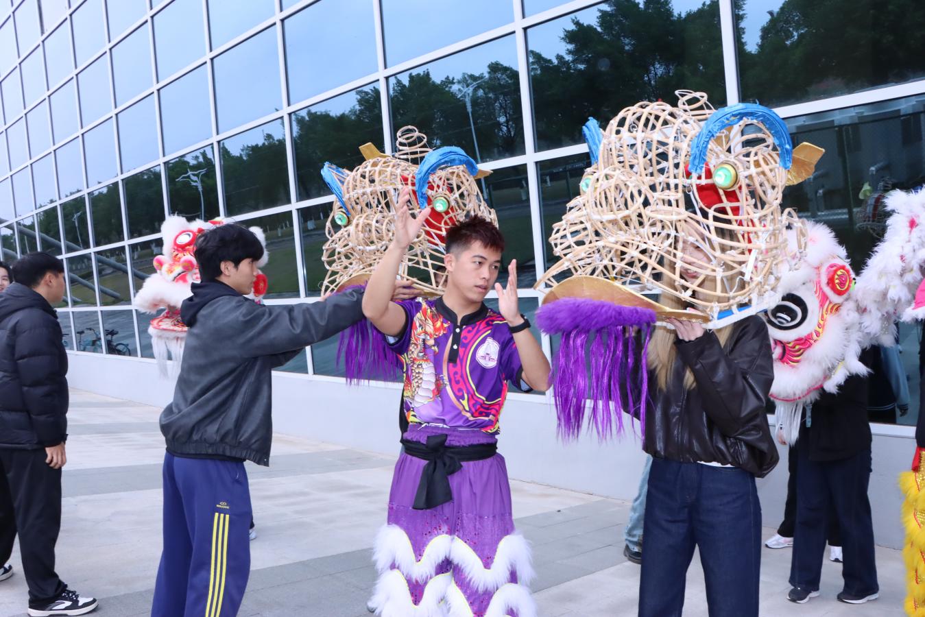 访学团在体育与健康学院体验舞龙舞狮文化