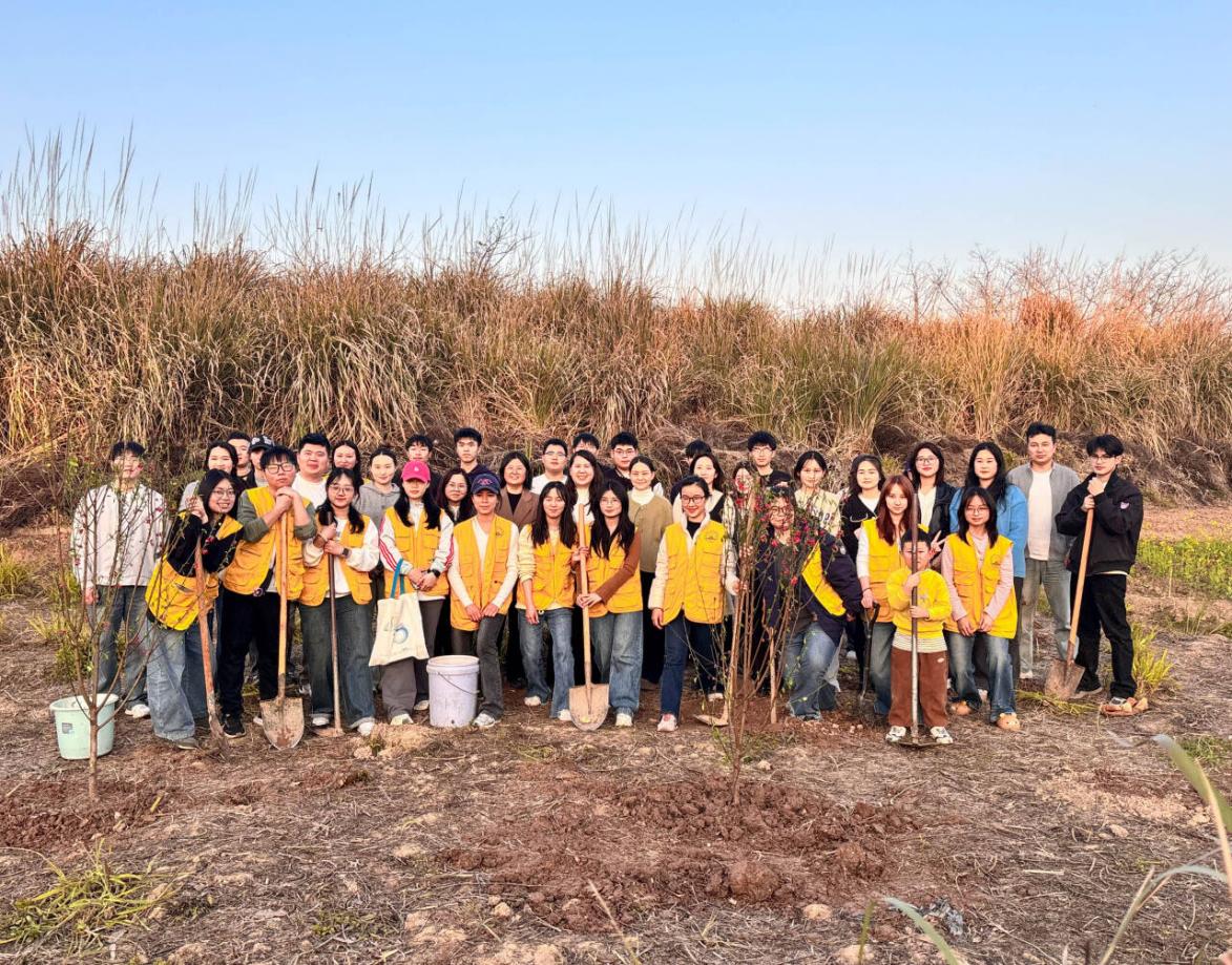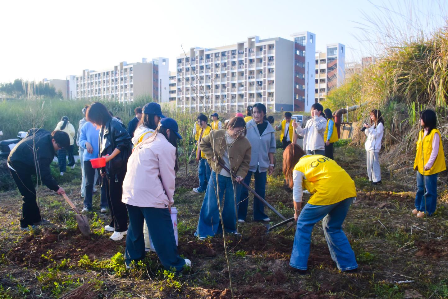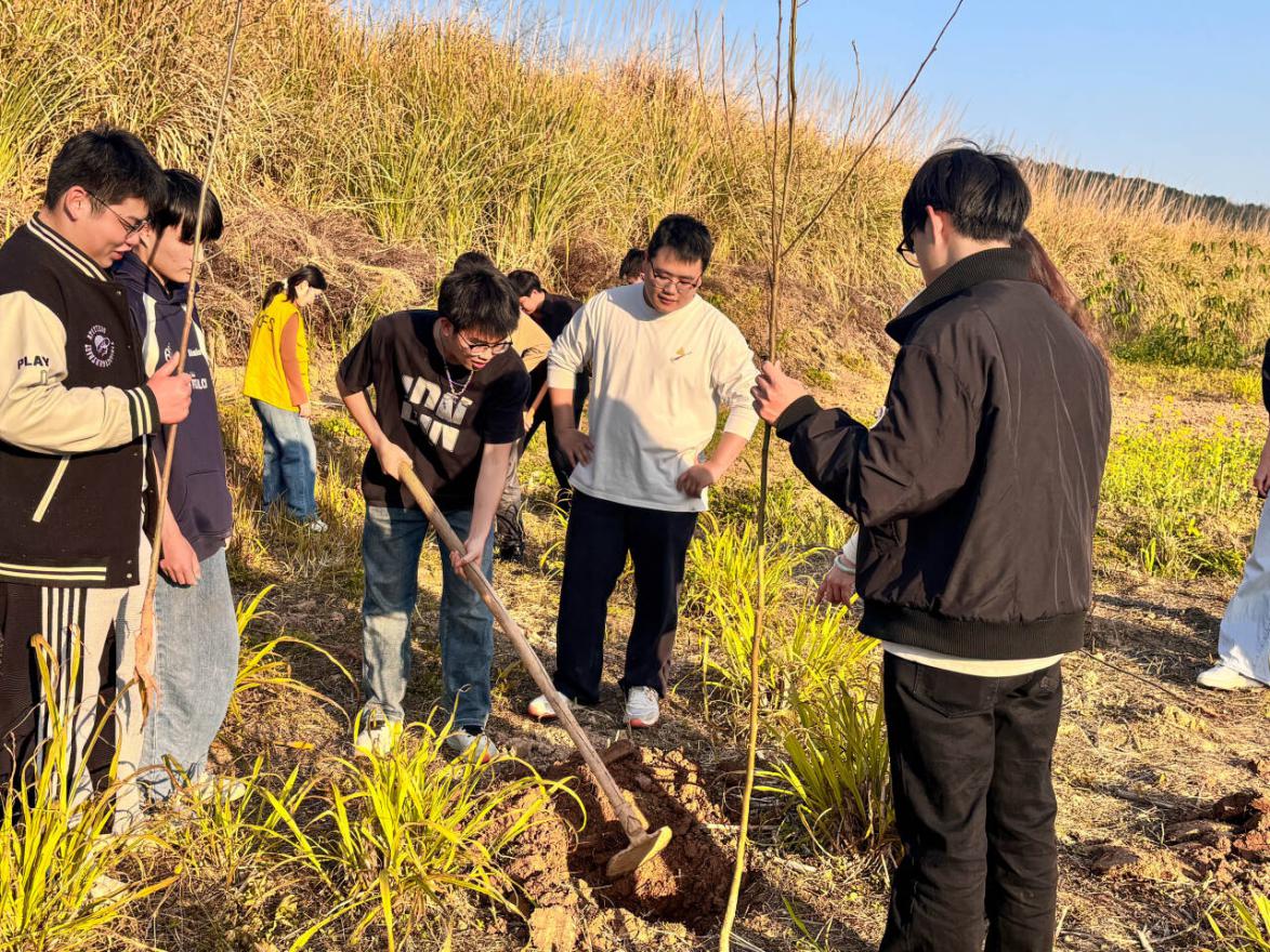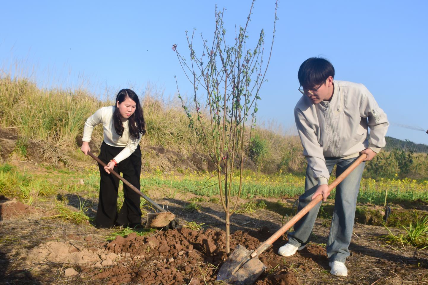 为深入学习贯彻习近平生态文明思想,创新劳动教育形式,3月12日,生命科学学院联合外国语学院在雁山校区生物园劳动教育实践基地共同开展植树节主题实践活动。两院分管学生工作负责人、辅导员代表及学生代表共同参与,以实际行动践行绿色理念,共建绿色校园。