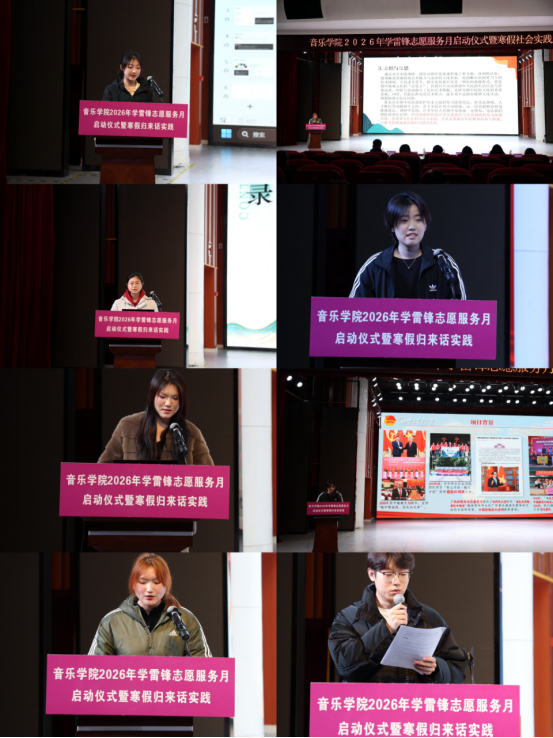 各寒假社会实践团队代表围绕前期筹备、实地调研、宣传推广、报告撰写、实践感悟等方面展开详细汇报,用鲜活案例、真实数据与真切体会,全面呈现寒假社会实践的丰硕成果,充分展现了音乐学院学子的专业素养和责任担当,为在场同学提供可借鉴、可复制、可推广的实践经验。