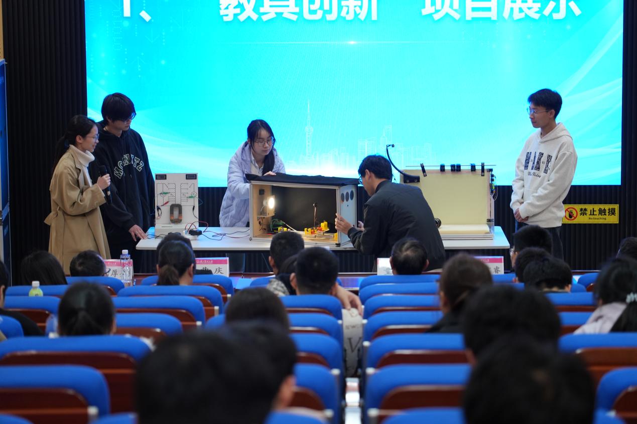 仪式现场,学生代表进行了教具创新项目展示,展现了物院学子扎实的专业功底和创新思维,赢得阵阵掌声。