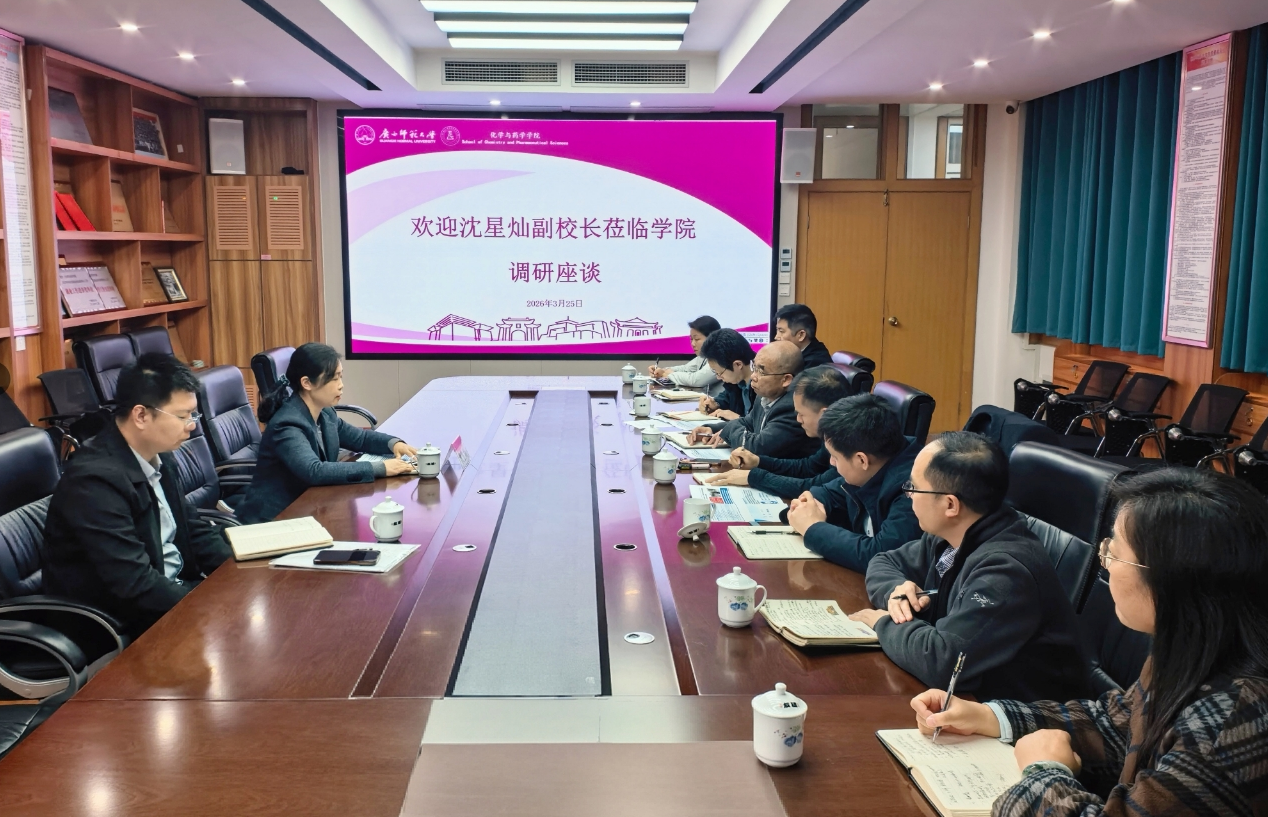 3月25日下午,校党委常委、副校长沈星灿赴化学与药学学院,调研广西高原学科(化学)及药用资源化学与药物分子工程教育部重点实验室建设工作。学院领导班子、重点实验室负责人及学科带头人参加调研座谈会。