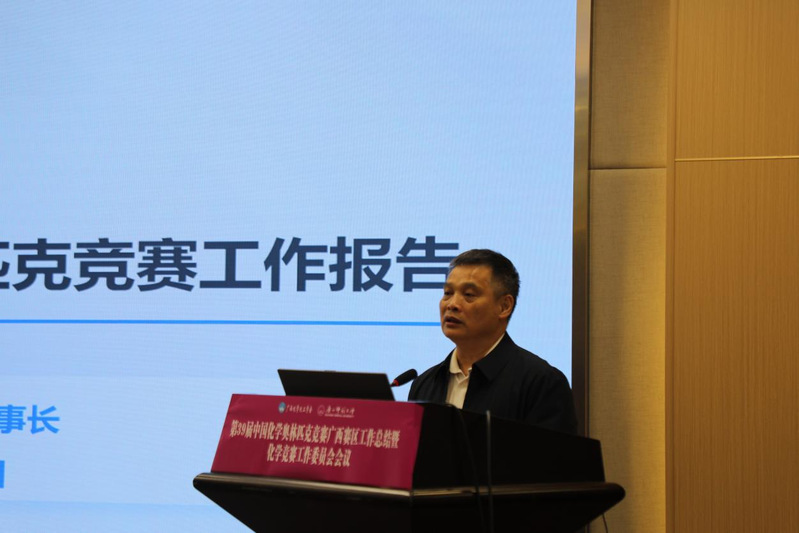 黄尚顺对2025年广西赛区工作进行总结,全面回顾赛事组织、命题质量、选手表现等情况,系统梳理工作成效与改进方向。李华锋汇报2026年第40届中国化学奥林匹克竞赛广西赛区工作方案,就赛事组织、报名安排、培训指导等作出详细部署。学会副秘书长卢秋影对新修订的中国化学奥林匹克工作条例及实施细则进行解读,明确竞赛工作新规范、新要求。会议正式宣布,第40届中国化学奥林匹克竞赛广西赛区承办单位为广西师范大学化学与药学学院。
