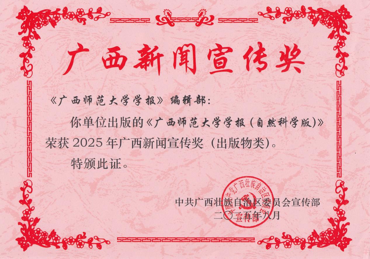 《广西师范大学学报(自然科学版)》荣获2025年广西新闻宣传奖(出版物类)