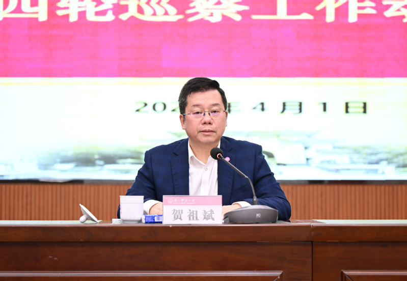 2026年4月1日,十二届校党委第四轮巡察工作动员会召开。校党委书记、巡察工作领导小组组长贺祖斌出席会议并作动员讲话,校党委副书记、巡察工作领导小组副组长黄文韬主持会议并作本轮巡察工作部署,校党委常委、组织部部长谭智雄宣布巡察授权任职决定,被巡察党组织主要负责人代表作表态发言。