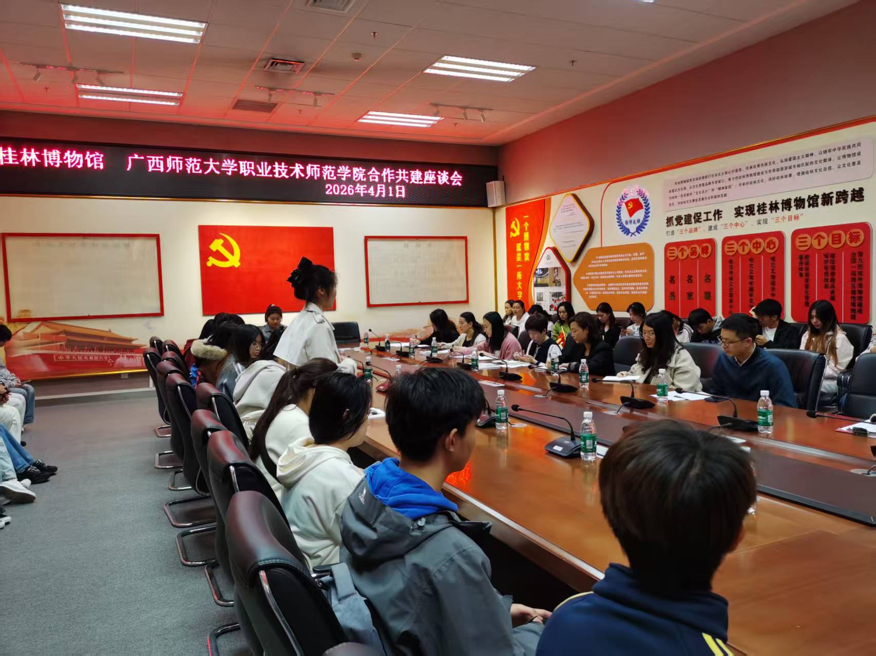 座谈会上,职业技术师范学院教学相关负责人介绍了学院办学特色、专业布局、人才培养与社会服务情况,并重点推荐旅游管理、电子商务、工艺美术等专业毕业生到馆实习就业。他希望双方共享优质资源、共建育人阵地,让学生在真实文旅场景中锤炼项目策划、文化传播等核心能力,同时以青年创意与学术研究赋能博物馆文旅融合发展。桂林博物馆副馆长王莹莹介绍了馆内馆藏资源、社教体系与文旅发展成果,表示将充分发挥文化阵地优势,全力配合学院课程建设与人才培养工作,为学子搭建高质量实践实训和就业平台。