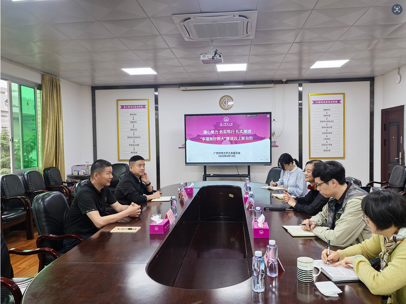 4月14日上午,在育才校区教工活动中心301会议室,桂林市总工会党组成员、副主席陈国书,桂林市教育工会负责人到我校工会调研指导工作。校工会负责人陪同调研。