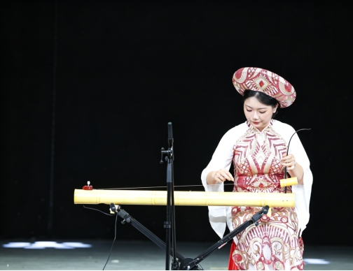 音乐会在桂林市大埠中心校小朋友们带来的瑶族舞蹈《花瑶棍》中拉开帷幕,童真灵动的舞姿尽显民族文化薪火相传的生机,让民族团结的种子在少年心中生根发芽。彝族民谣《不要怕》、京族独弦琴独奏《美丽的竹子》、侗族民歌《侗家恋歌》、瑶族舞蹈《花瑶棍》等极具广西民族特色的精彩节目轮番呈现,压轴歌伴舞《春风十万里》气势磅礴,抒发各族青年同心共筑中国梦的坚定志向。整场演出将广西多民族音乐文化、校地艺术联动与校园美育实践深度融合,生动诠释了“各美其美、美美与共”的民族团结内涵。