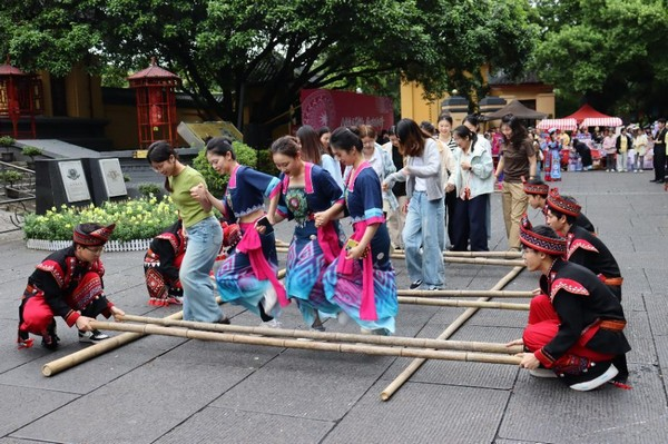 春拂八桂,歌满漓畔;石榴花开,籽籽同心。4月15日,广西师范大学2026年广西三月三铸牢中华民族共同体意识民族文化传承展示活动,在雁山校区孔子广场、育才校区中华传统文化名人园、王城校区正门同步拉开帷幕。 活动以“八桂校园石榴红,同心共筑中国梦”为主题,近万名中外师生、离退休教师、附属中小学幼儿园学生、社区市民及八方游客齐聚一堂,共同沉浸于这场跨越年龄与国界的民族文化盛宴。