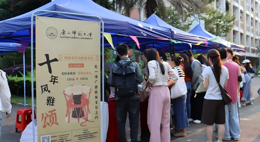 广西三月三期间,文学院/国际中文教育学院/新闻与传播学院举办了系列融合理论深学与民俗体验的特色活动,将思政课堂延伸至山水之间,以生动实践铸牢中华民族共同体意识。