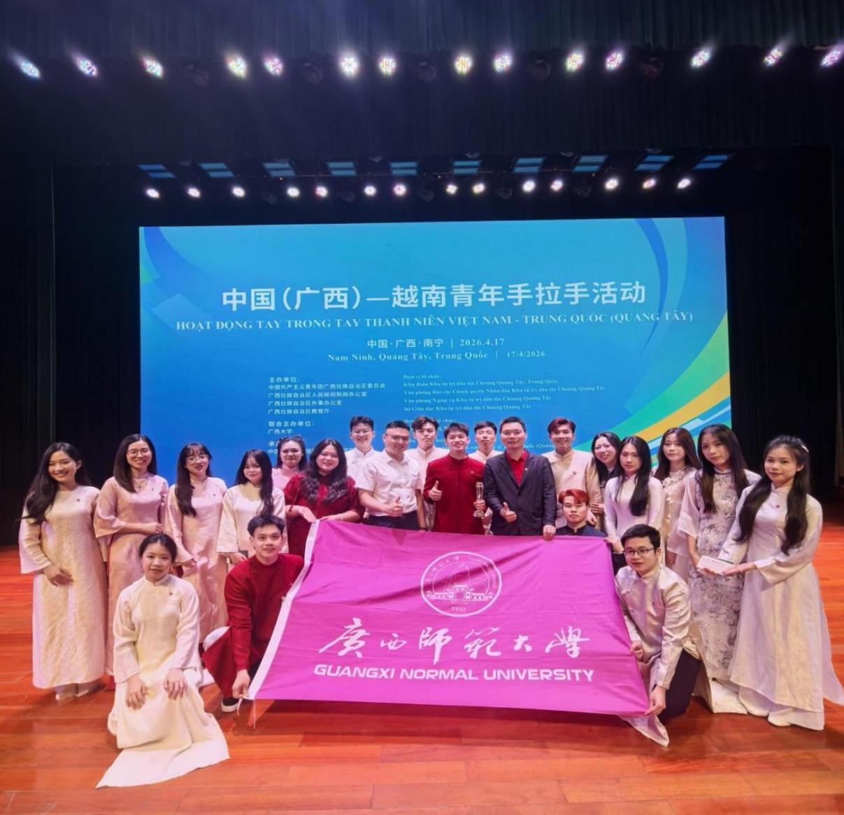 4月17日,我校中越师生代表22人在广西大学参加中国(广西)—越南青年手拉手活动。我校越南留学生阮官尚同学受聘为中国(广西)-越南友好故事青年讲述官,并做题为《多学一种语言,多看一个世界,多过一种人生》的主题分享。我校中越师生代表还在广西大学大礼堂(又称广西南宁育才学校旧址、越南中央学舍区)聆听越共中央总书记苏林发表演讲。