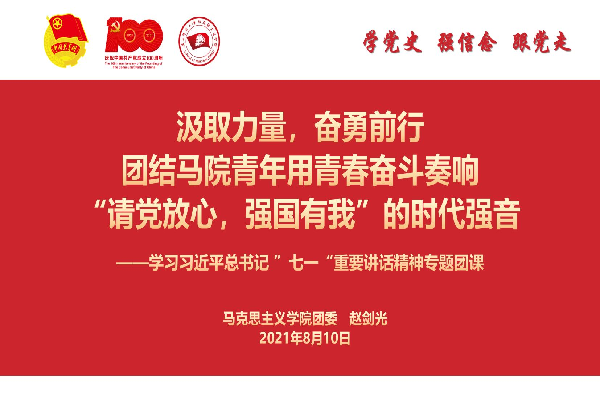 马克思主义学院团委开展“学党史 强信念 跟党走”——学习习近平总书记在庆祝中国共产党成立100周年大会上的重要讲话主题团日活动