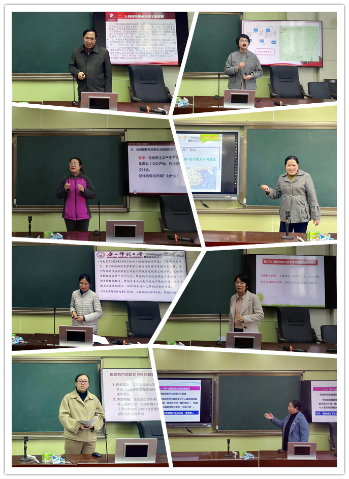 为落实立德树人根本任务,发挥课堂主渠道作用,深化课程思政教学改革,强化课程育人导向,把思想政治工作贯穿教育教学全过程,促进学院课程思政教学水平的整体提升,3月4日下午,马克思主义学院举行第二届课程思政讲课比赛,学院相关负责人、教授代表、中青年教师代表出席比赛并担任评委。