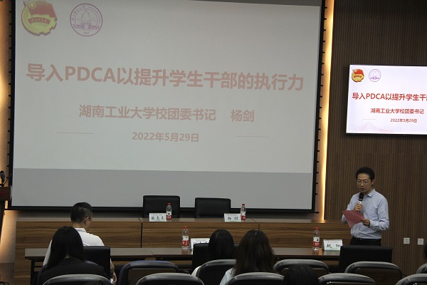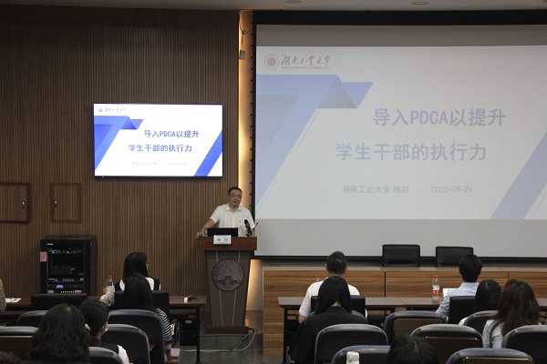 讲座围绕“导入PDCA以提升学生干部的执行力”主题开展。以“学”“生”“干”“部”为切入点阐释学生干部的含义,强调了优秀学生干部应具备的“四有”表现,重点突出了优秀学生干部的执行力。创新性地提出运用“PDCA”找到工作中的短板、反思、行动、检查、再反思,循环向前,从而提升学生干部的执行力。最后,杨剑从“改”“受”“思”“敢”四个方面出发,引导学生干部提升自我修养,提高个人执行力。