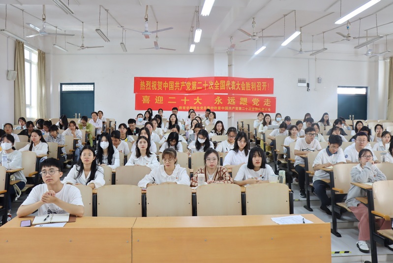 在育才校区田楼102和雁山校区文四103、104教室,师生党员怀着激动的心情认真聆听了习近平总书记代表第十九届中央委员会所作的报告。习近平总书记在二十大报告中指出,“教育、科技、人才是全面建设社会主义现代化国家的基础性、战略性支撑。”广大师生党员深受激励的同时,又深感自身作为教师和师范生之责任重大。党员同志们纷纷表示,我们要牢记习近平总书记“坚持教育优先发展”“加快建设教育强国”“坚持为党育人、为国育才”“造就拔尖创新人才,聚天下英才而用之”的殷殷嘱托,要更加自觉地增强政治责任感、历史使命感和育才紧迫感,立报国之志,担时代之责,不负党和人民的期望与重托。