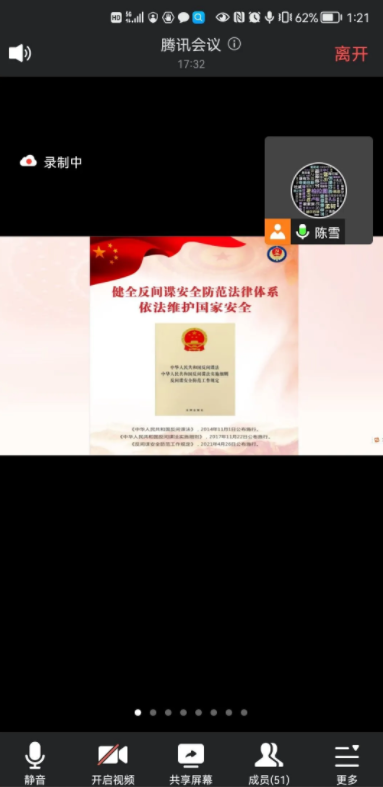 11月1日是《中华人民共和国反间谍法》颁布实施8周年纪念日。为深入学习党的二十大有关国家安全的论述,贯彻落实总体国家安全观,切实加强反奸防谍宣传教育,提升青年学生国家安全意识,职业技术师范学院高度重视、及时部署、统一要求,各支部各班级积极采取多种形式开展教育活动。其中11月1日,学院研究生第一、第二党支部联合开展了“弘扬党的二十大主旋律,增强全民国家安全意识和素养”教育学习活动,两个支部全体党员通过腾讯会议线上参加了活动。