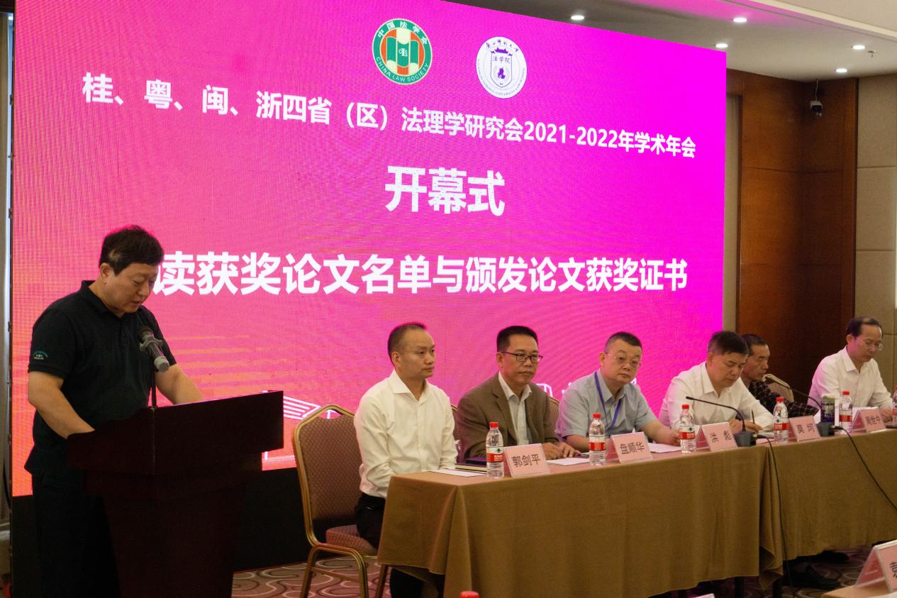 广西师范大学法学院副院长、广西壮族自治区法理学研究会秘书长李德进宣读获奖名单