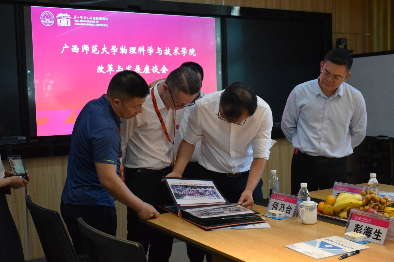 为进一步加强院友联络,凝聚院友力量,共同庆祝广西师范大学九十周年校庆,携手打造更有影响力的物理学院,11月12日,物理科学与技术学院在院办105会议室召开改革与发展座谈会,优秀院友代表和学院领导班子出席会议,会议由学院党委负责人主持。