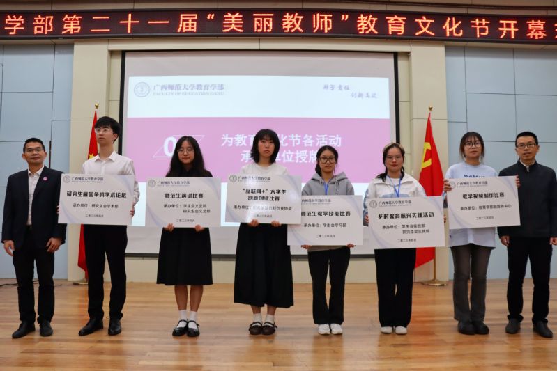 为进一步深化“强院兴校”和“一院一节一特色”建设内涵,营造浓厚的师范生技能竞赛氛围,4月9日,教育学部在雁山校区大学生学术报告厅举办第二十一届“美丽教师”教育文化节开幕式。教育学部党委主要负责人、学生工作负责人、团委主要负责人、系主任代表、全体辅导员、本研学生代表共同参加本次活动。