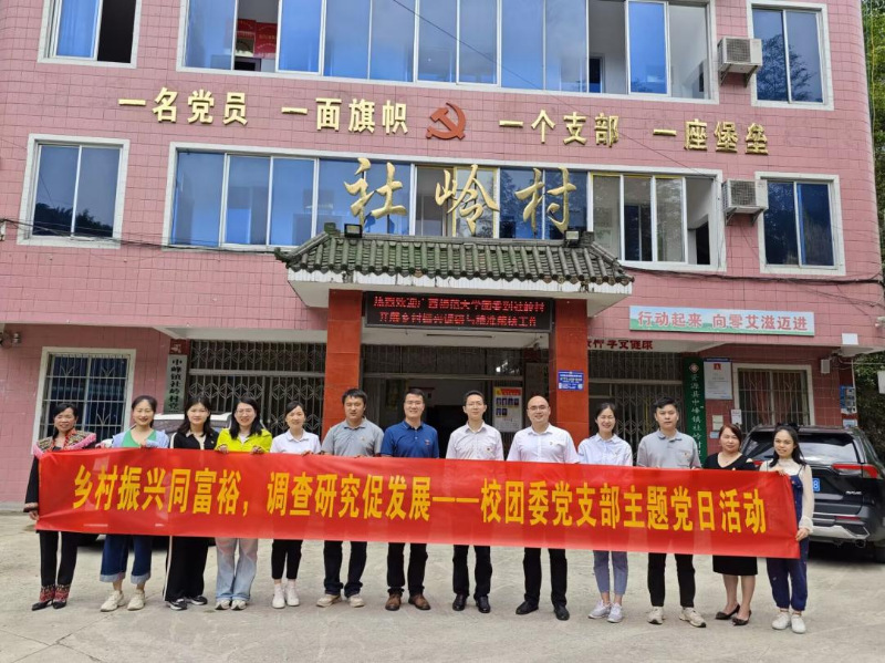 为深入学习贯彻习近平新时代中国特色社会主义思想,进一步发挥乡村振兴后盾单位帮扶力量,5月19日,校团委党支部全体党员来到乡村振兴对口帮扶单位资源县社岭村,开展主题教育联学共建活动,通过走访参观、座谈交流邓方式推动主题教育走深走实。社岭村党支部委员会主要负责人、学校驻社岭村前任第一书记、社岭村相关干部参与活动。