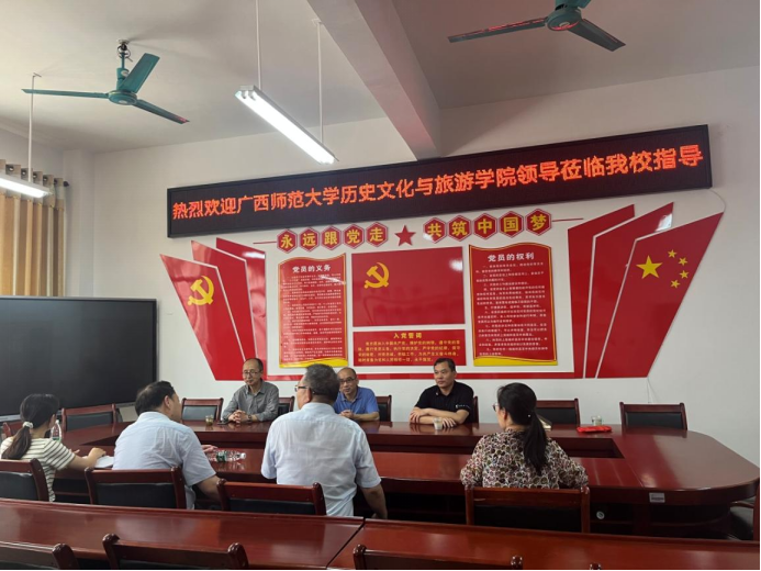 为落实立德树人根本任务,持续贯彻“学生中心、产出导向、持续改进”理念,对照学校审核评估进行阶段性整改与常态化整改,全面提升人才培养质量,深入了解广西基础教育教学改革与发展情况,了解历史文化与旅游学院师范生在中学开展教育实习工作的进展情况,进一步加强对教育实习工作的指导和管理。5月17-18日,历史文化与旅游学院教学口负责人一行3人专程赴贺州市钟山中学、富川县高级中学两所学校,看望在那里进行教育实习的历史文化与旅游学院历史学师范专业2020级本科生,同时就基础教育教学改革与发展现状、师范专业人才培养质量、用人单位满意度等相关问题同实习学校举行座谈和交流。