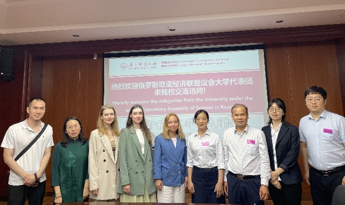 会上,国际文化教育学院党委主要负责人代表广西师范大学热烈欢迎来自俄罗斯欧亚经济联盟议会大学的嘉宾,并介绍了学校的基本情况、国际教育交流的亮点和特色。巴赫婕娜·安娜·尤里耶夫娜介绍了俄罗斯欧亚经济联盟议会大学的基本情况,特别是国际合作与对外交流方面取得的成绩和未来的愿景。施洛娃·安娜·叶甫根尼耶夫娜就学生和教师科研项目情况进行了详细说明。