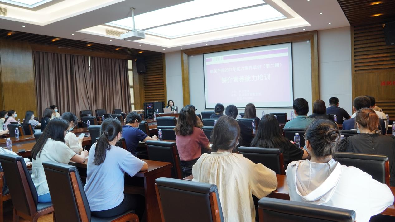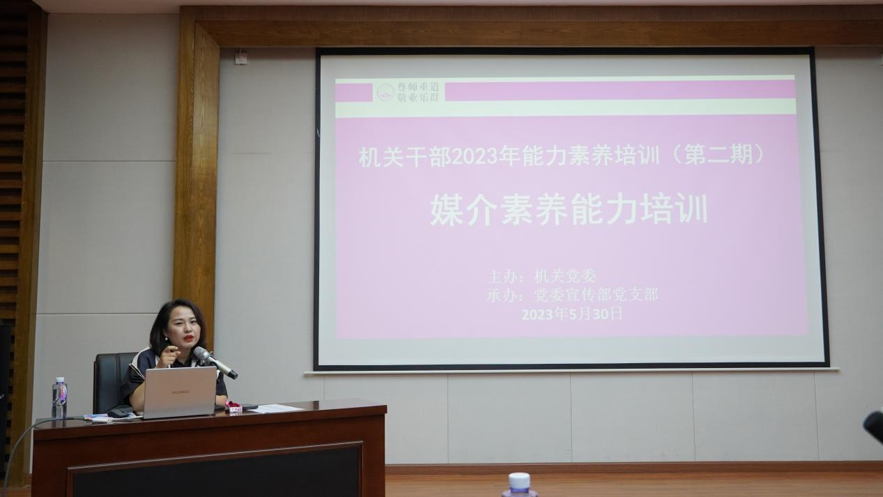5月30日,机关党委组织开展2023年能力素养培训(第二期):新闻媒介素养能力培训,对机关各党支部宣传委员、各部门办公室秘书、通讯员、宣传员进行集中“充电”。此次培训由党委宣传部党支部承办,机关各部门40多位老师参加。