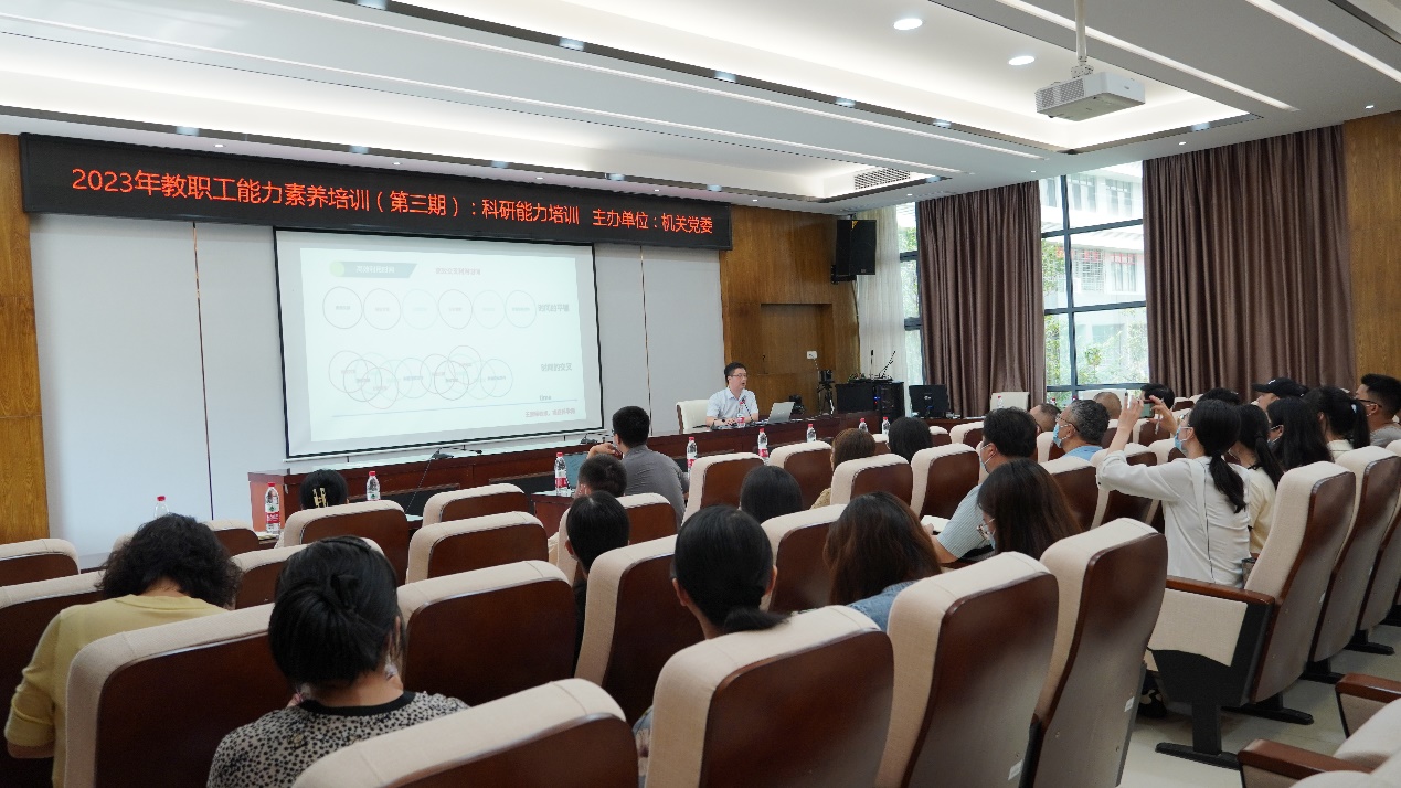 近日,机关党委组织开展了机关干部2023年能力素养培训(第三期):科研能力培训,旨在增强广大机关干部的科研意识、提高科研能力,从而促进教职工的成长发展。