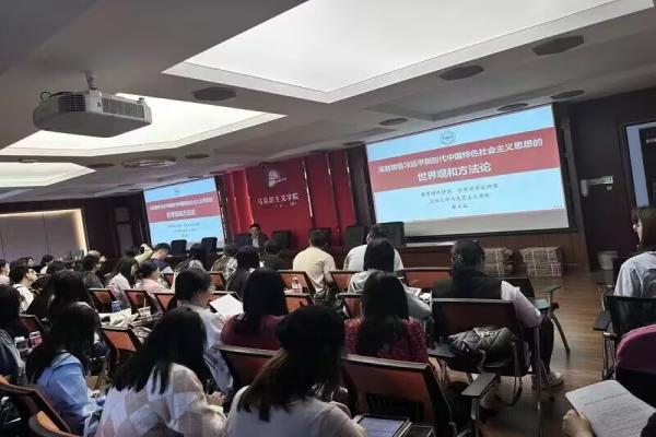 习近平总书记指出,“这次主题教育,要在推动学习贯彻新时代中国特色社会主义思想走深走实上下功夫,教育引导党员、干部从思想上正本清源、固本培元,不断提高政治判断力、政治领悟力、政治执行力。”马克思主义学院党委发挥马院作为学习研究宣传马克思主义的主阵地作用,领导班子以身作则,在理论学习入脑入心、真信笃行上下功夫,从中悟规律、明方向、学方法、增智慧,真正把看家本领、兴党本领、强国本领学到手,进一步提升建强建优全国重点马院的能力水平。