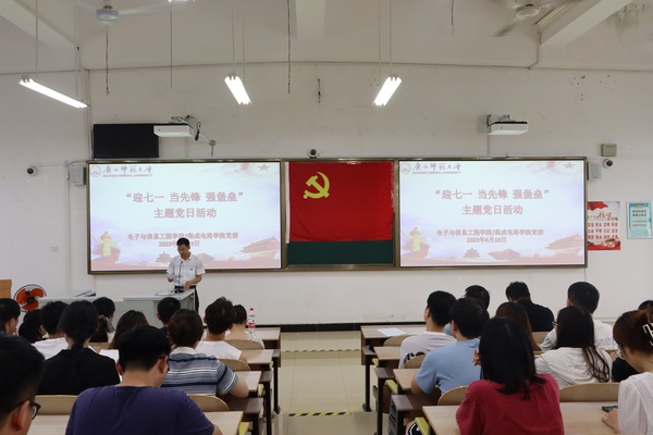 6月19日,电子与信息工程学院在育才校区第二文科楼0414组织开展“庆七一 当先锋 强堡垒”主题党日活动。学院党委主要负责人、6个学生党支部的委员、全体在校学生党员及毕业班辅导员共140多人共同庆祝中国共产党成立102周年。