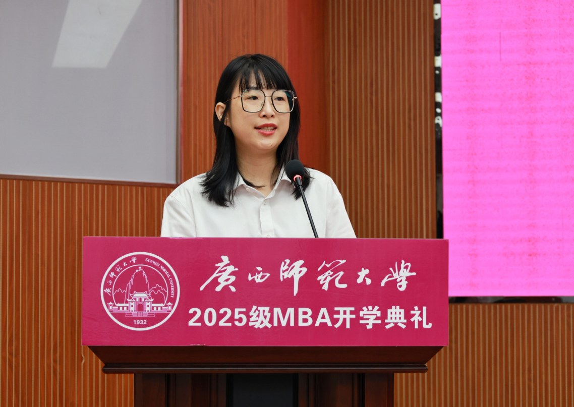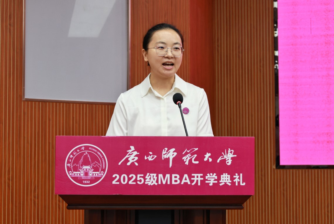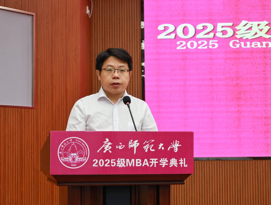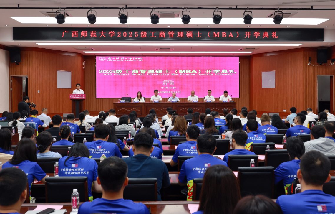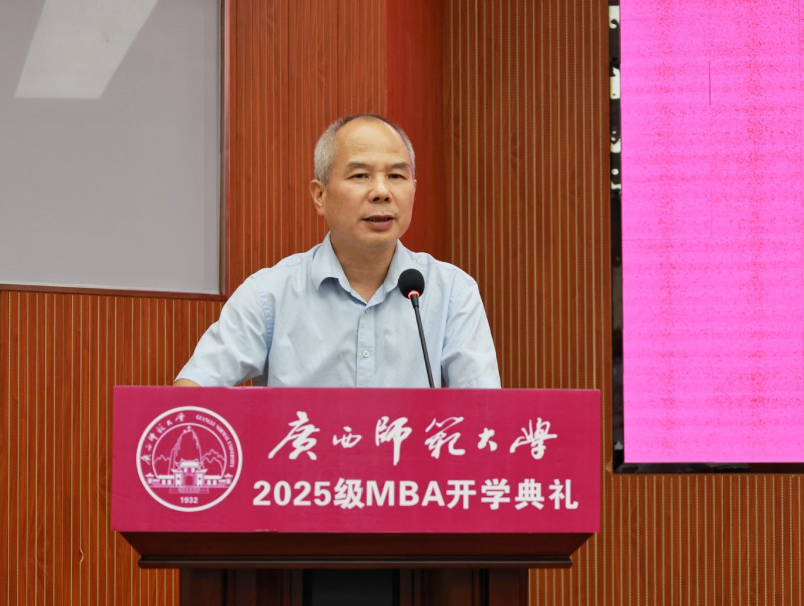 9月22日,广西师范大学2025级工商管理硕士(MBA)开学典礼在育才校区国际教育交流中心201报告厅举行。校党委常委、副校长李先贤教授,校研究生院主要负责人,经济管理学院党政领导班子,经济管理学院MBA导师及2025级MBA新生共同出席。典礼由经济管理学院分管研究生副院长主持。