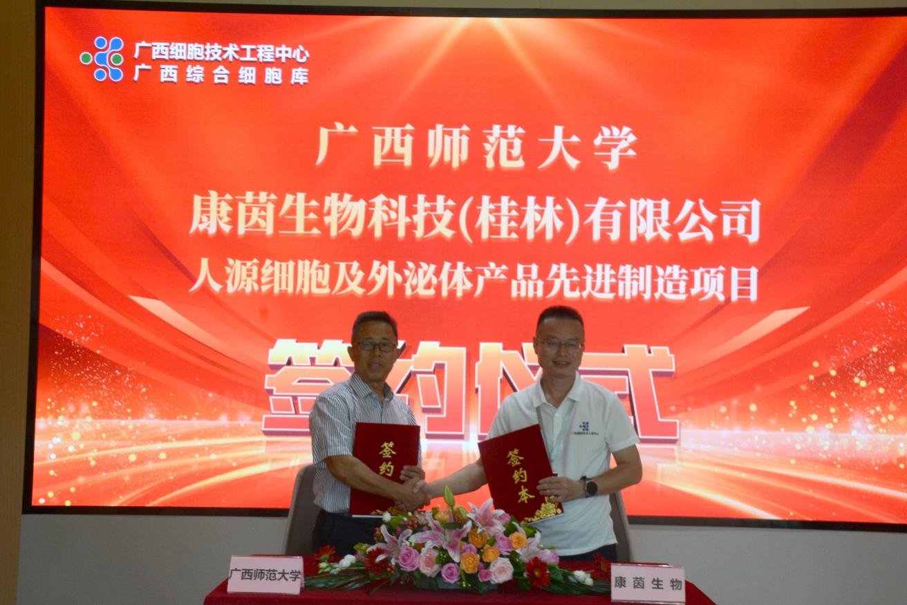 为贯彻落实学校2025年发展与改革研讨会精神,推进校企产学研合作协议事项落地,9月22日上午,生命科学学院与康茵生物(桂林)科技有限公司在广西细胞技术工程中心举行“人源细胞及外泌体产品先进制造”项目签约仪式,标志着双方在产学研深度融合方面迈出关键一步。