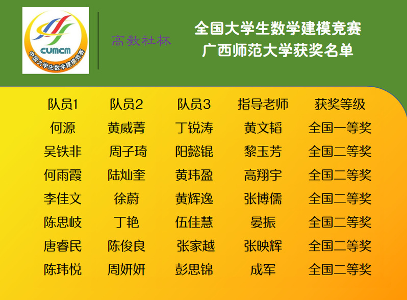 近日,由中国工业与应用数学学会联合主办的2025年“高教杯”全国大学生数学建模竞赛成绩揭晓,我校学子表现优异,荣获全国一等奖1项,全国二等奖6项。