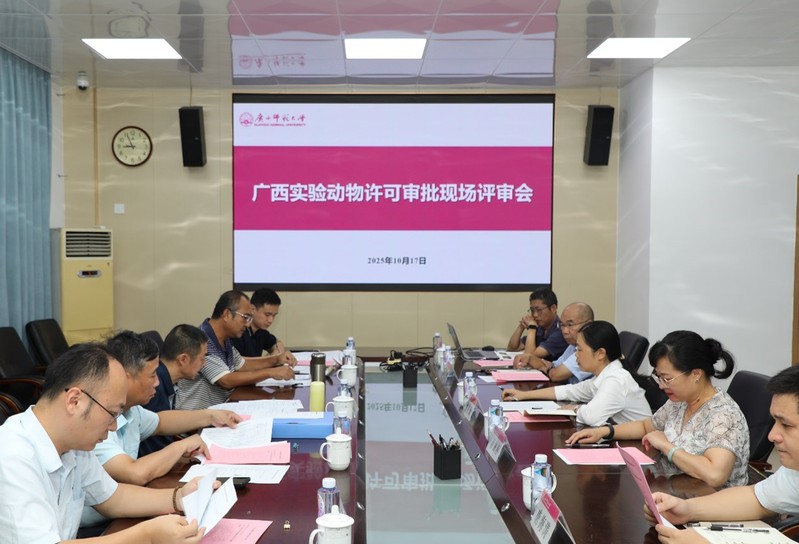 近日,广西实验动物管委会办公室组织评审专家组对我校实验动物中心实验动物使用许可进行了现场核验评审。评审专家组由自治区疾控中心、职业病防治研究院、灵康赛诺科生物科技有限公司及实验动物管委会办公室的五位资深专家组成。校党委常委、副校长沈星灿、科学技术处、化学与药学学院及实验动物中心相关负责人参与评审会。