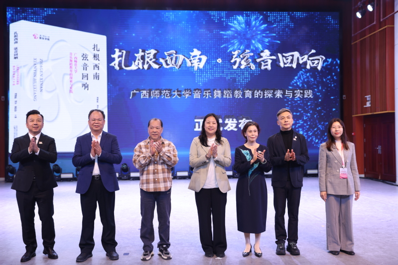 会上举行了《扎根西南·弦音回响——广西师范大学音乐舞蹈教育的探索与实践》院史新书发布仪式。广西师范大学副校长黄晓昀、原副校长白晓军、音乐学院原院长黄小明、蔡韧,学院现任院长,出版社党委书记、董事长黄轩庄,经济管理学院党委相关负责人共同为新书揭幕。学院党委负责人介绍了该书的编撰过程与主要内容,指出该书不仅记录了学院发展史,更展现了扎根西南民族地区推进音乐教育实践的探索精神,号召全院师生从中汲取力量,在新征程上奏响更宏伟的乐章。