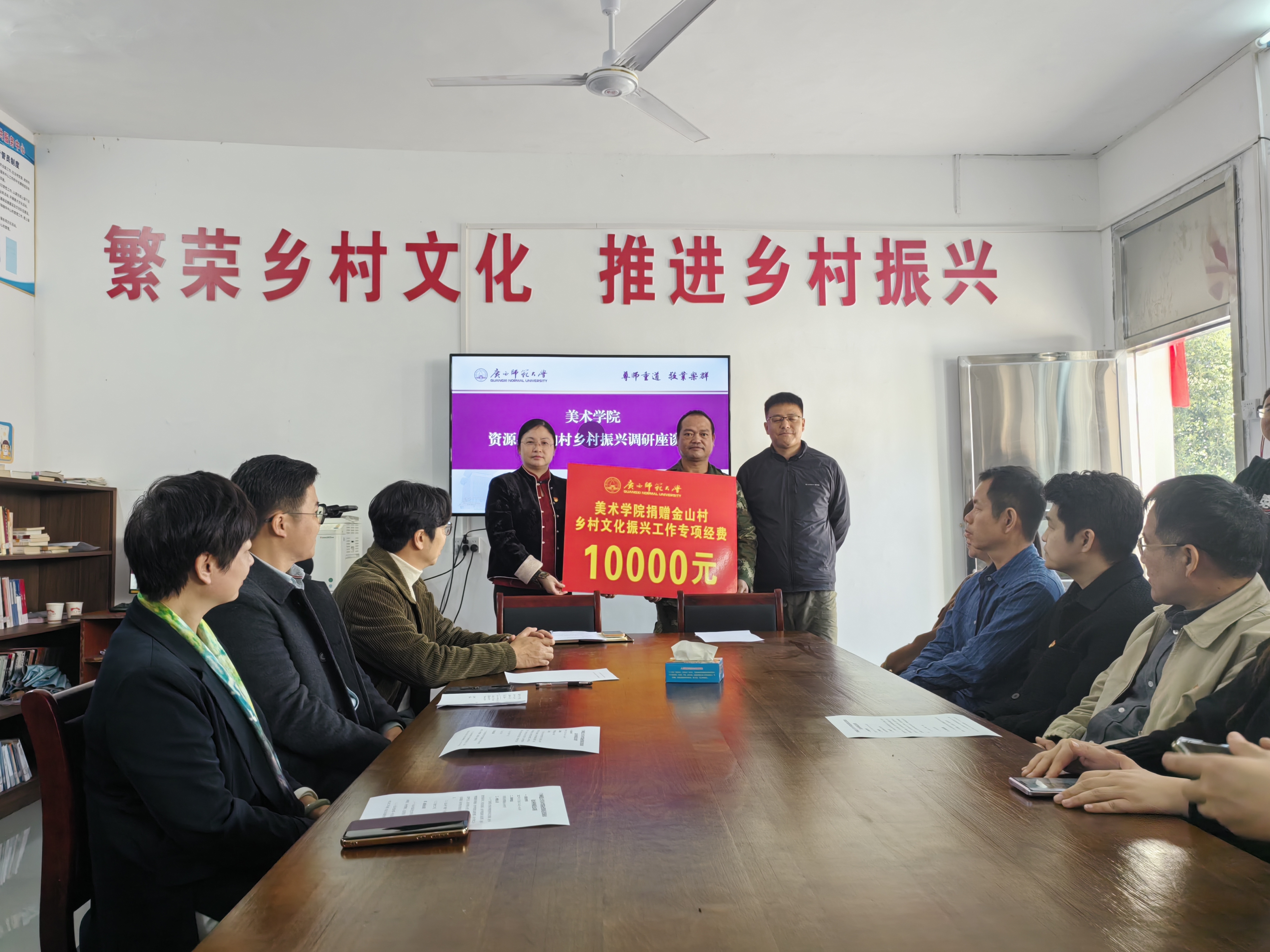 座谈期间,美术学院党委代表美术学院向金山村捐赠1万元乡村振兴专项基金,专项用于支持该村公共文化设施提质或特色产业培育,以实际行动彰显美术学院助力乡村建设的责任担当。