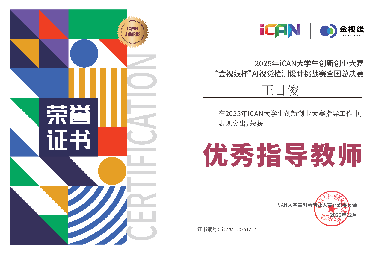 12月6日至7日,2025iCAN大学生创新创业大赛“金视线杯”AI视觉检测设计挑战赛全国总决赛在江苏大学(镇江)成功举办。我校职业技术师范学院选派的两支参赛团队(孙璐、任旭莲、蒋明会;黄玉灿、汤骏、李育霖)在机械工程系王日俊老师的悉心指导下,凭借创新技术构思、扎实实践能力与出色表现,从全国600余所高校3162名选手中崭露头角,一举夺得两项全国一等奖,展现了我校学子在AI视觉技术领域的创新实力与实践素养。