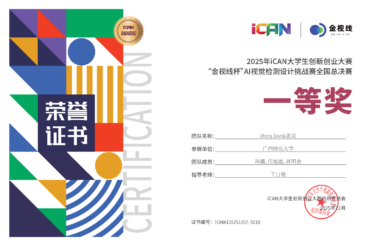 【喜报】职业技术师范学院学子在2025iCAN大学生创新创业大赛“金视线杯”AI视觉检测设计挑战赛中获2项全国一等奖