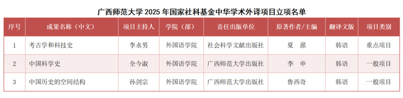 12月23日,全国哲学社会科学工作办公室正式公布了2025年国家社会科学基金后期资助暨优秀博士学位论文出版、优秀学术著作再版项目和中华学术外译项目立项名单。我校共获批8项资助,其中包括5项后期资助项目(重点项目1项、一般项目4项)和3项中华学术外译项目(重点项目1项、一般项目2项)。