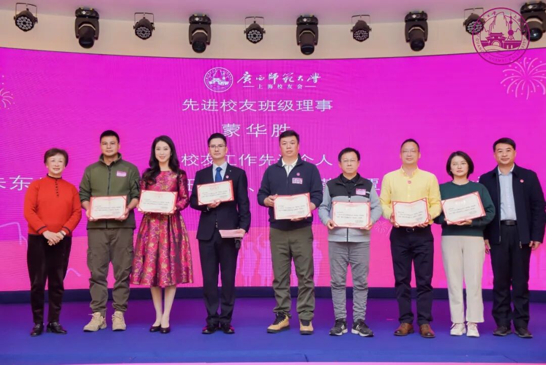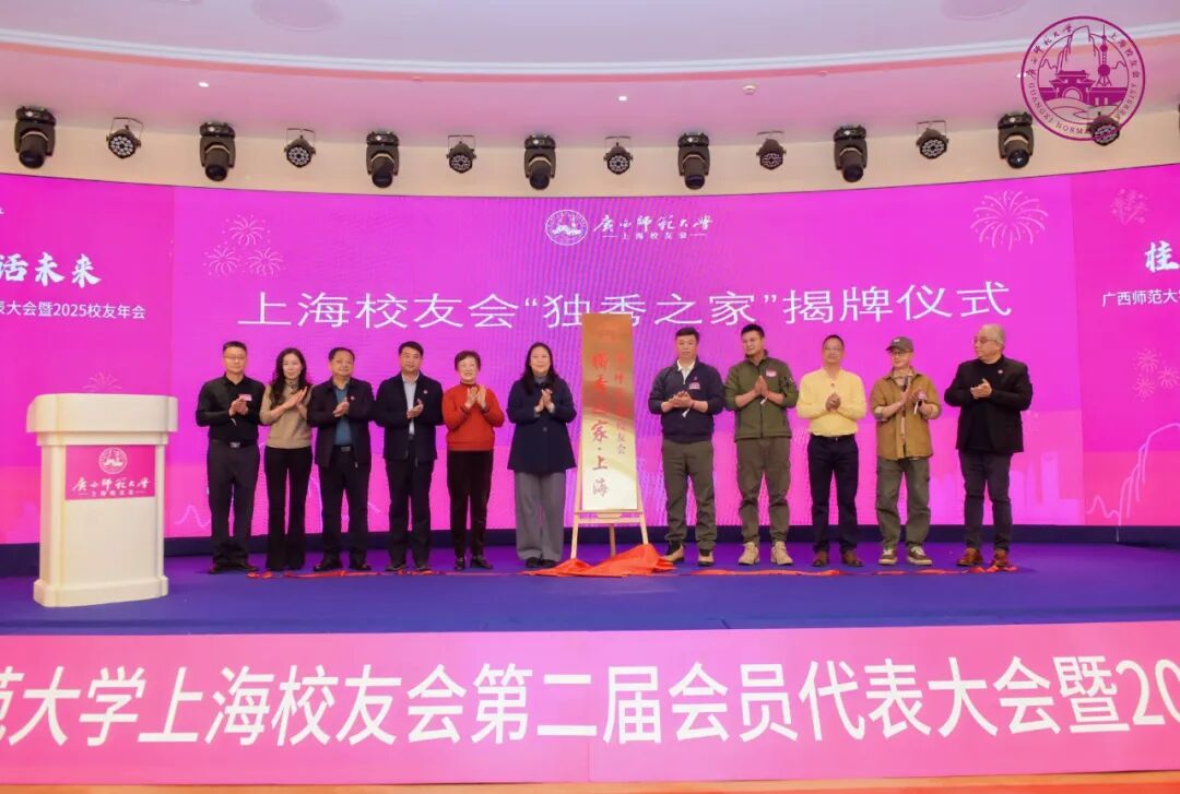 丁静在发言中指出,上海校友会站在了继往开来的重要节点,在沪校友们互助发展,以“沪桂共发展”的视野、“师大一家亲”的情怀,支持母校高质量发展。上海校友会上届会长刘广汉作第一届理事会工作报告,新当选会长蒙华胜在就职发言中表达了对母校培养的感激之情,并表示新一届理事会将传承上届校友会优良传统,紧密团结在沪校友,积极搭建交流平台,促进资源共享,支持母校建设。山西校友会会长李磊代表兄弟校友会发言,祝贺年会取得圆满成功。桂林市投资促进局副局长刘学永校友介绍了桂林的发展情况。会上,还进行了校友会第50家独秀之家揭牌仪式、优秀校友表彰活动。最后,大会在激昂的校歌《育才之歌》中圆满落幕。