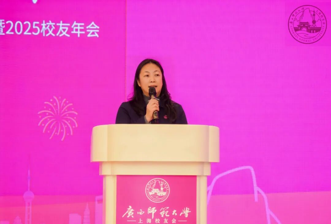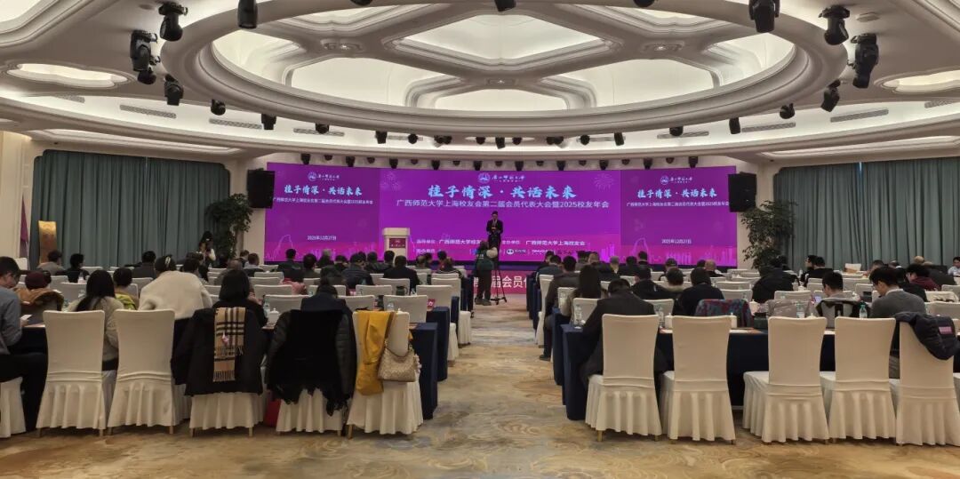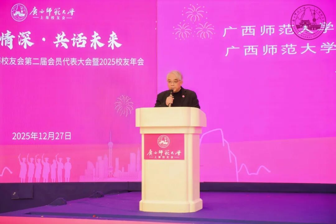 12月27日,以“桂子情深·共话未来”为主题的广西师范大学上海校友会第二届会员代表大会暨2025校友年会在上海举行。学校党委书记、校友会会长贺祖斌向大会发来贺信,向上海校友致以亲切的问候,对年会举办表示热烈祝贺。校党委常委、副校长、校友会常务副会长黄晓昀率领校友工作办公室/基金会管理办公室、学校出版社相关负责人出席活动并致辞。学校党委原常委、原总会计师丁静,上海地区各界校友代表、兄弟校友会代表及在沪高校校友会代表、商会嘉宾近200人参加活动。