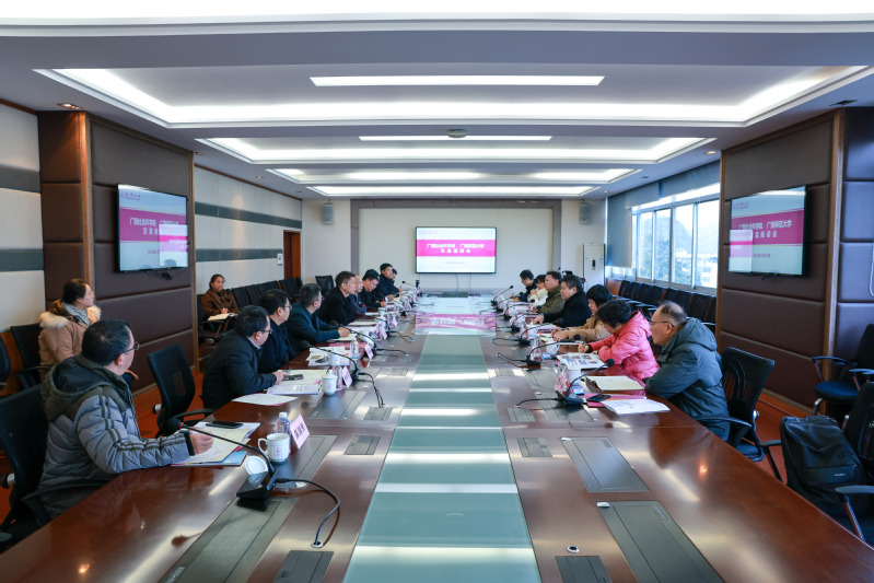 1月22日,广西社会科学院党组书记、院长张洪石一行到我校育才校区调研并座谈。校党委副书记、校长孙杰远出席座谈会,校党委常委、副校长李先贤主持会议。学校相关职能部门负责人参加座谈。