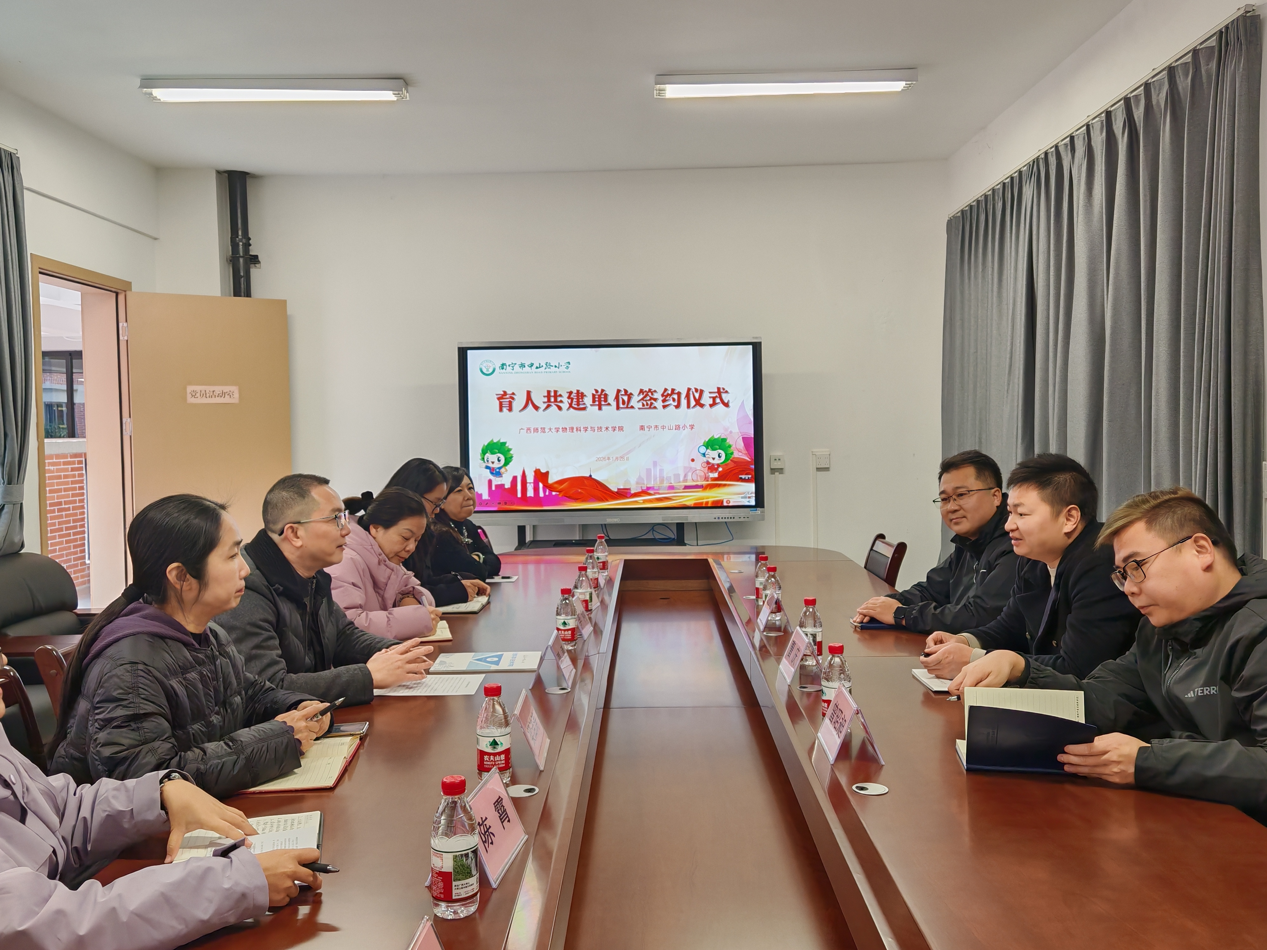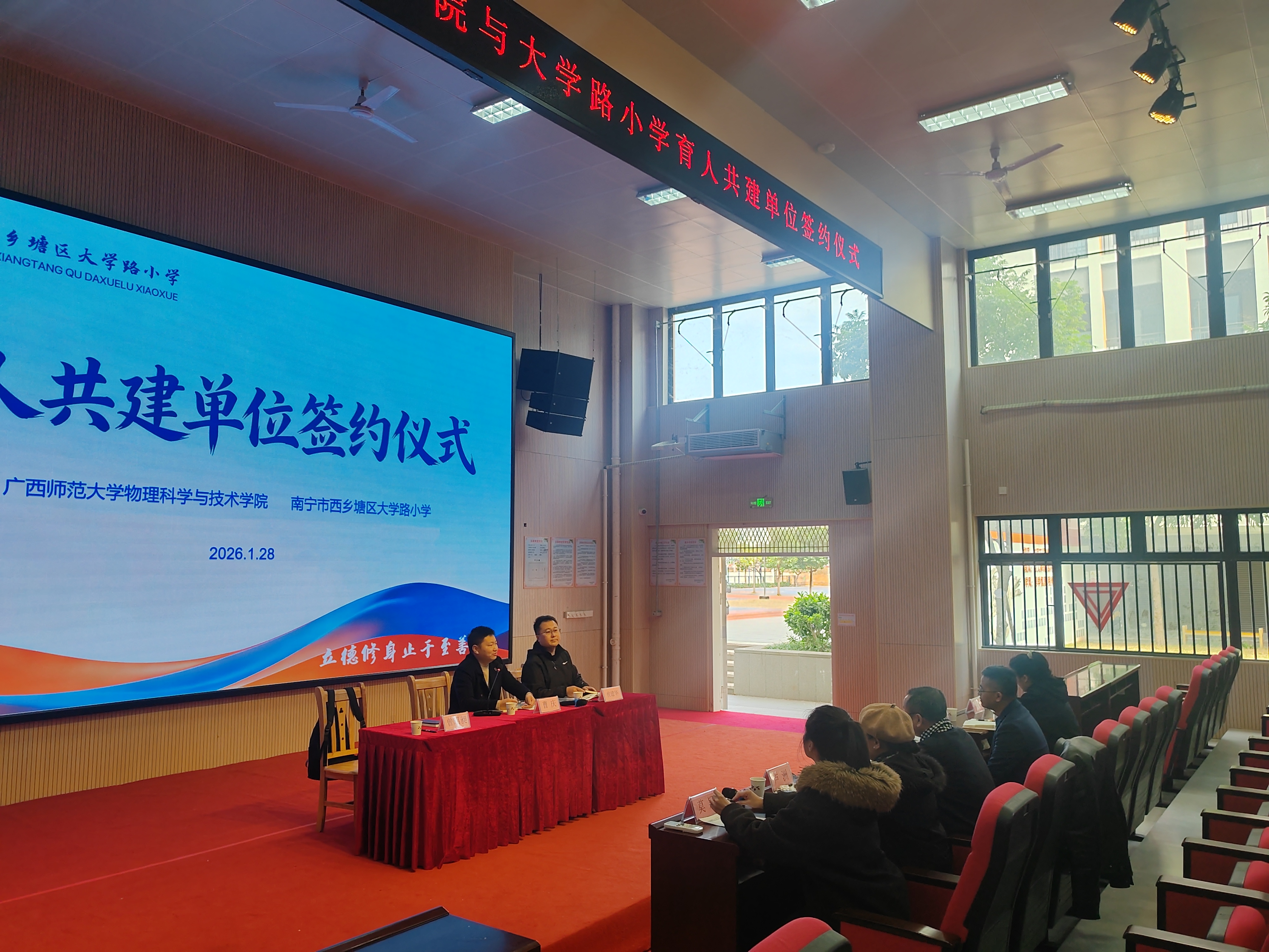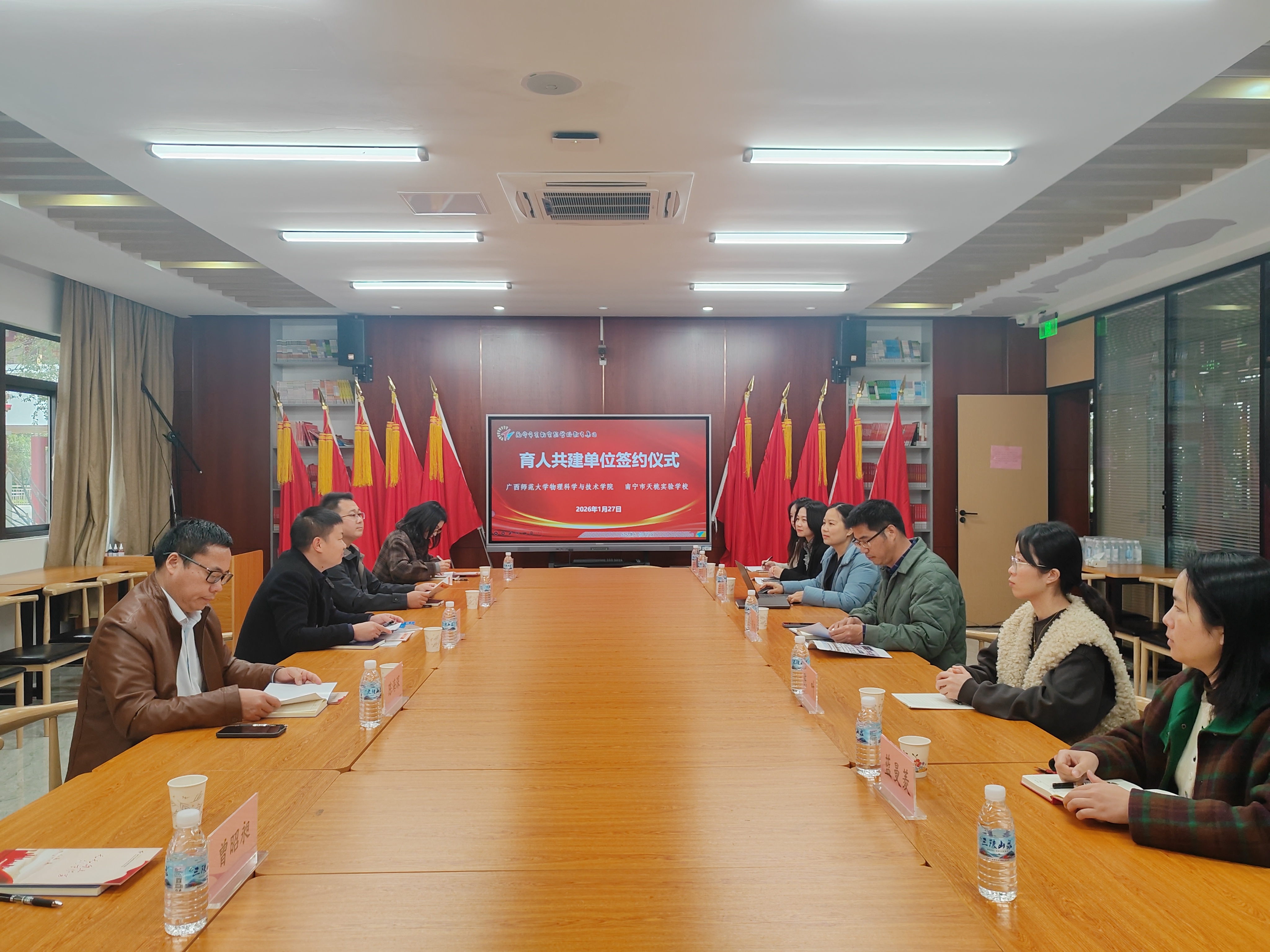 为抢抓春季就业关键窗口期,精准对接基础教育领域物理与科学教育人才需求,助力毕业生高质量充分就业,1月26日至31日,物理科学与技术学院党委相关负责人带领陈海深教授、侯建华老师、曾昭昶老师及博士生蒙玲一行 5 人,赴南宁市天桃实验学校、滨湖路小学、中山路小学、滨湖路小学五象校区、大学路小学、南宁市五象集团学校开展访校拓岗促就业专项行动,构建物理与科学教育人才培养与就业输送一体化合作体系。