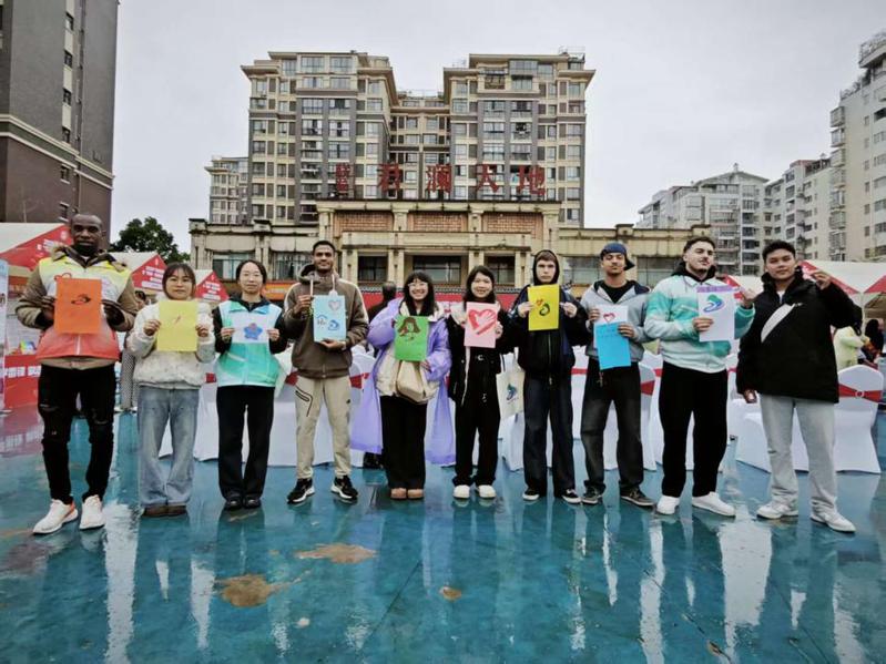 在活动现场,中外青年志愿者还联动了来自慧灵心智障碍服务机构,与孤独症青年思纯和晟铭,在社工简红的带领下一起进行手工作品的制作和助残义卖。慧灵是由我校教师等参与创办的爱心助残机构,主要为18周岁以上的孤独症、智力发展迟缓人士及家庭提供喘息服务、艺术康复、日间照料、社区康复等公益服务。