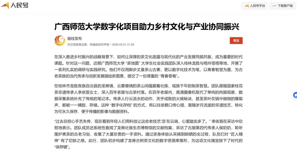 【中国网】【人民号】关注报道历史文化于旅游学院“广西茶地图”团队实践事迹