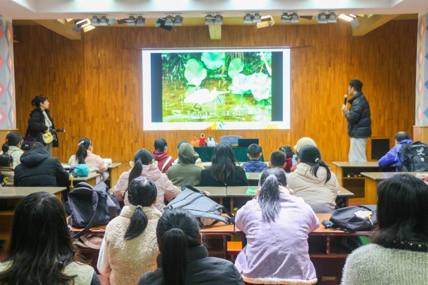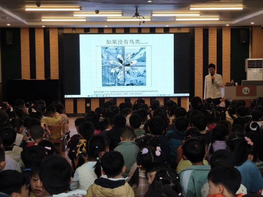 3月24日,科普热潮延续至兴安县华江瑶族乡中心小学。学院选派优秀讲师与志愿者为该校约100名学生带去了精彩的鸟类科普讲座。活动还辅以图片展览和拼图游戏,并向学生们发放了编制的科普折页和爱鸟书签,在孩子们心中播下了爱护鸟类、保护自然的种子。